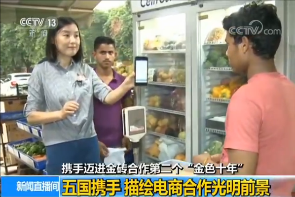 央视记者 李琳:金砖国家电子商务合作给中俄跨境物流带来了飞跃式的发展,同时也给印度带来了支付方式的变革。这里是印度首都新德里,这是路边的一个水果摊,刚刚在这里我用手机刷二维码买了一个西瓜。大家看这个支付页面是不是很眼熟,没错,这就是印度人的“支付宝”——paytm。由中国企业持股和提供技术支持的印度移动支付公司paytm在印度成立短短数年,已经成长为印度最大的移动支付平台。如今在印度,小至打车买菜,大到买房买汽车,都可以用paytm支付。可以说paytm已经逐渐改变人们的消费和支付习惯,为这里的经济活动带来新的动力。印度跨境网购成交额的58.4%,是由智能手机等移动设备完成的。